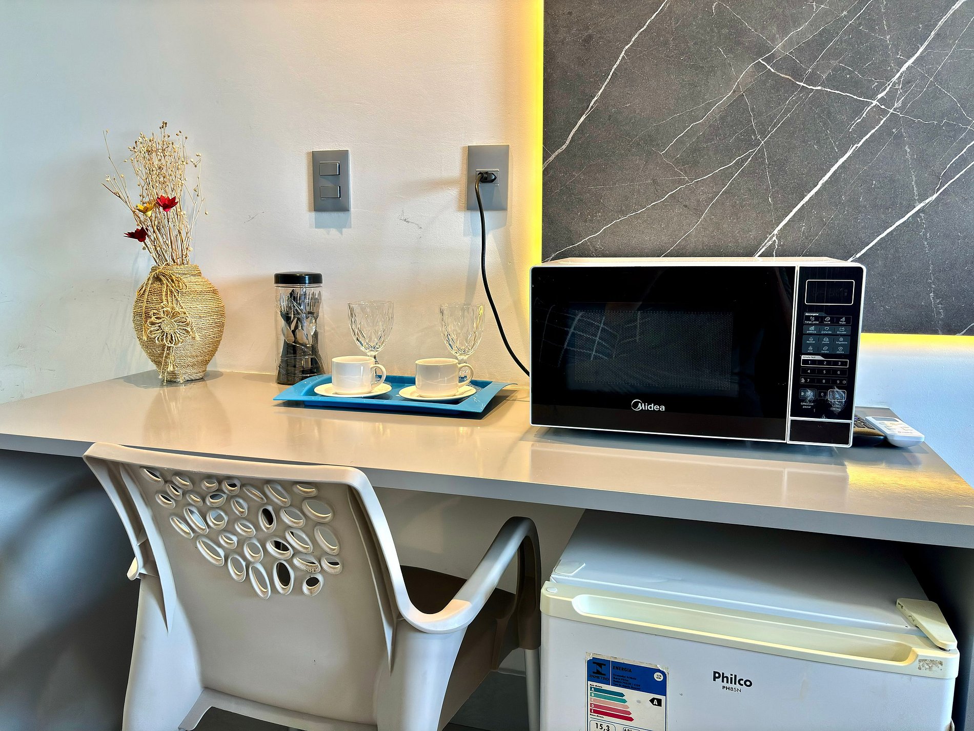 • Frigobar e micro-ondas. Kits fornecidos: