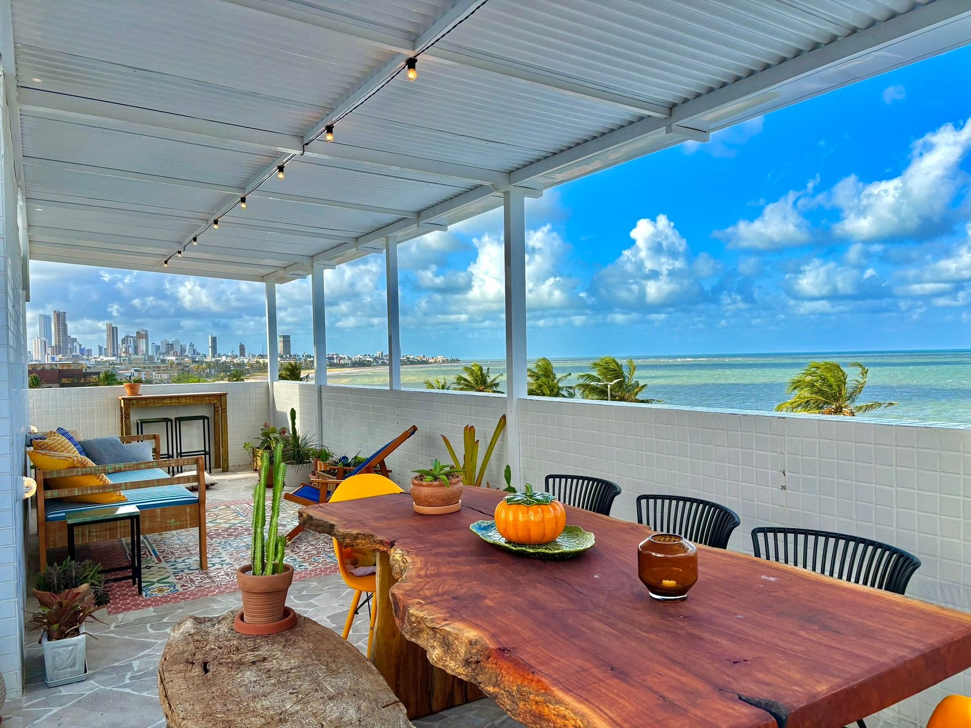 Cobertura duplex charmosa de um prédio à beira-mar da Praia de Manaíra. Acomoda até 5 pessoas, com cama queen e auxiliar, sofá-cama, Wi-Fi, piscina privativa e amplo terraço com vista panorâmica do mar. O prédio oferece piscina e recepção 24h. Localização privilegiada, próxima a restaurantes, mercados, farmácias e shoppings. Ideal para quem busca conforto, exclusividade e uma experiência inesquecível à beira-mar.