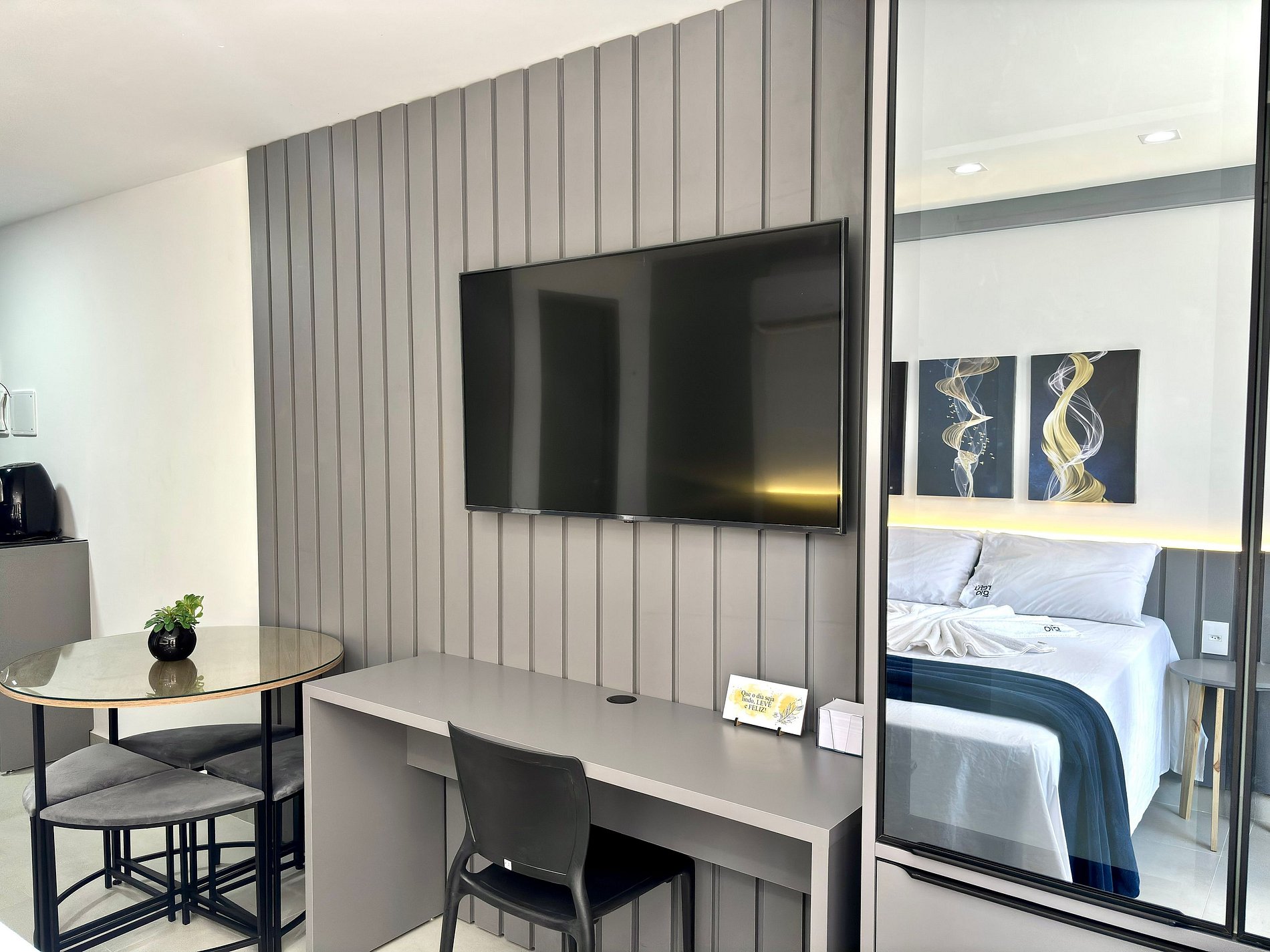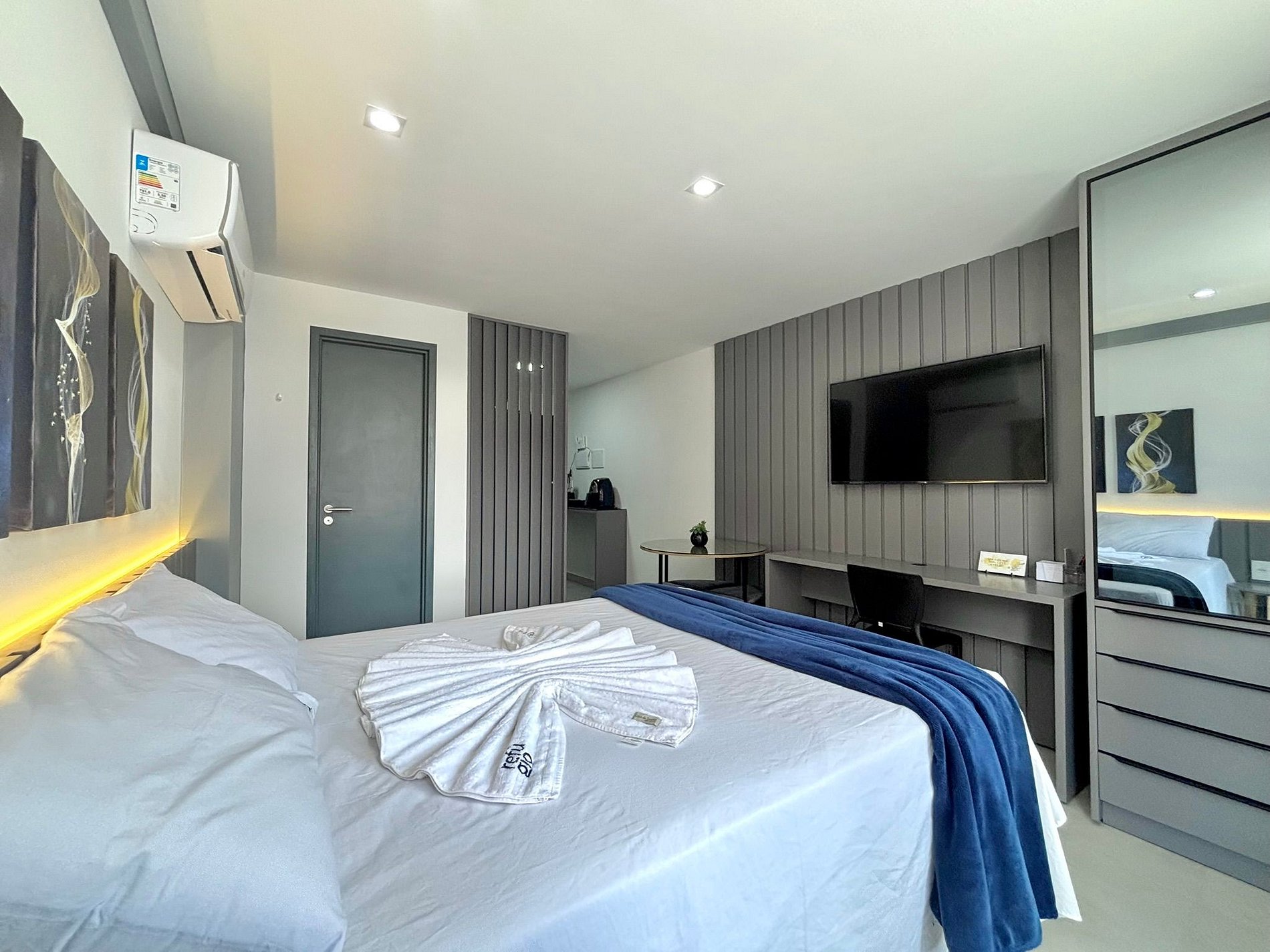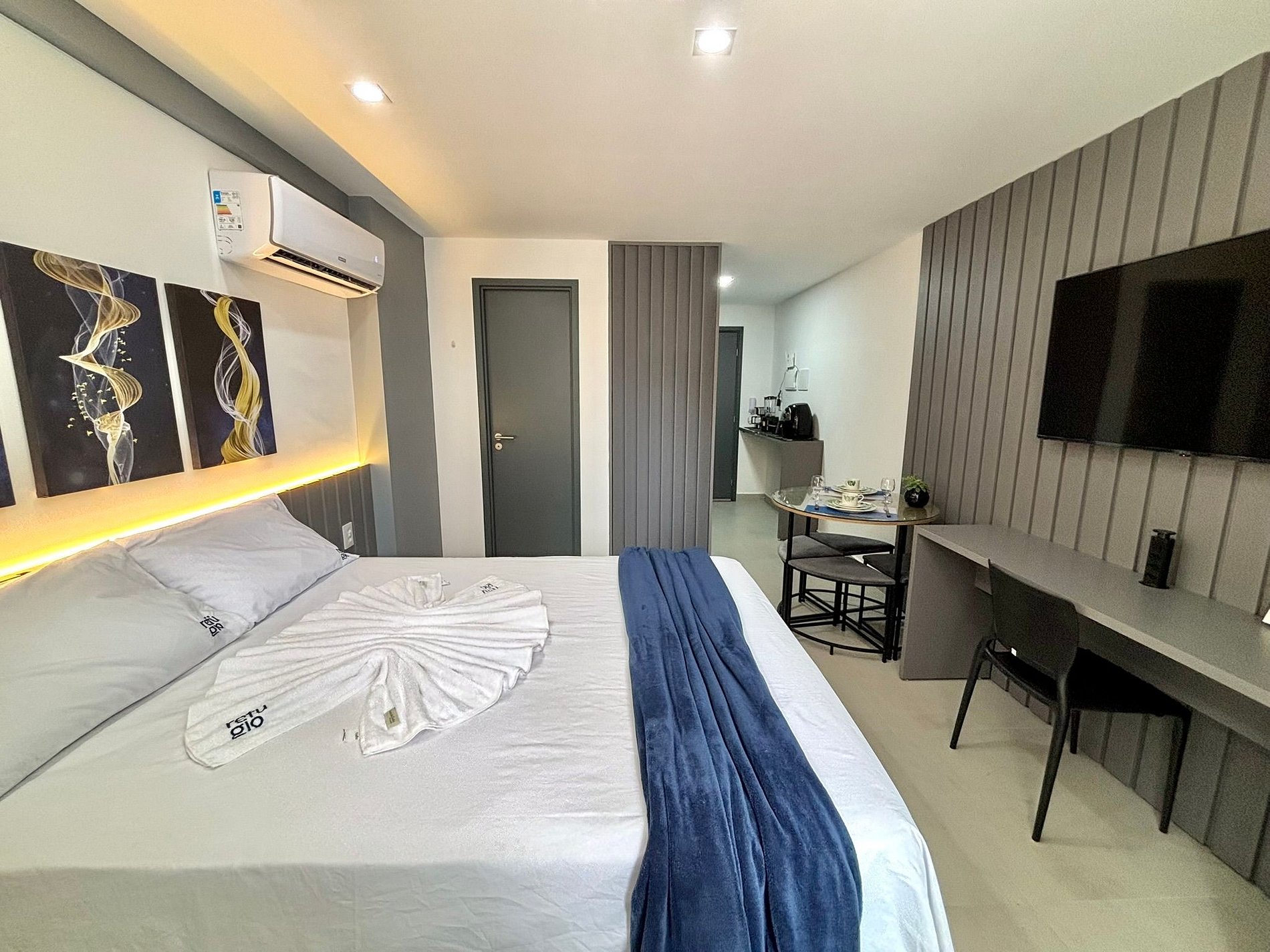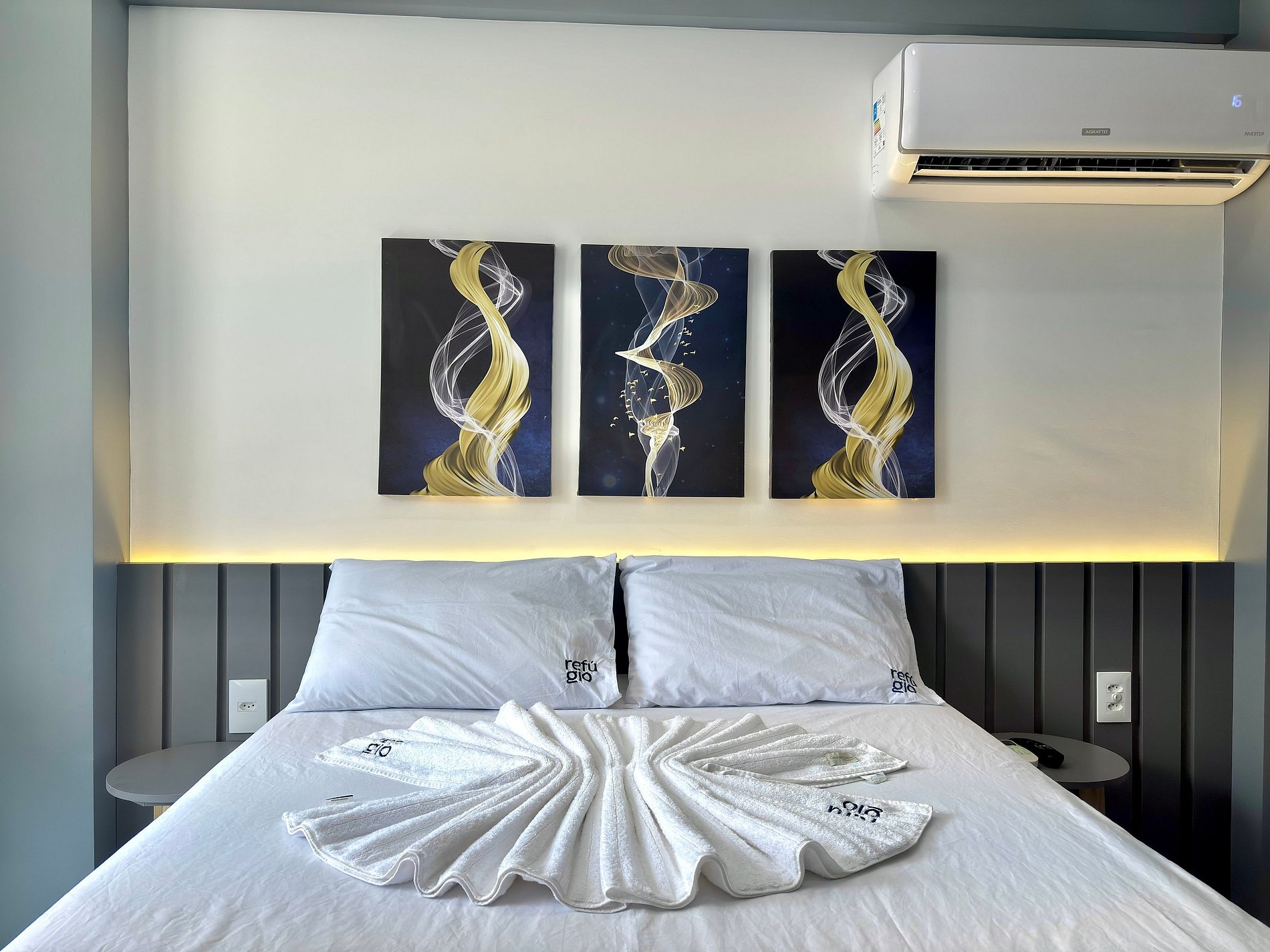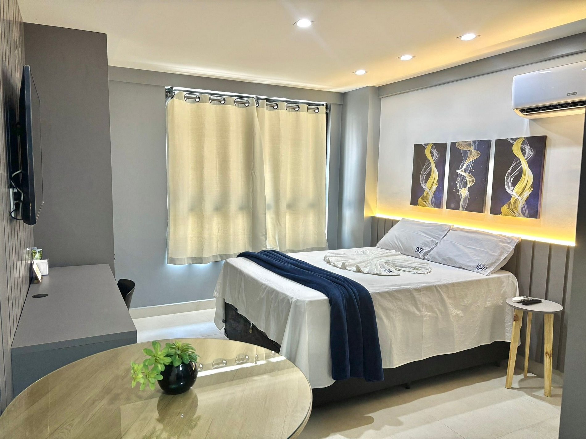 Desfrute de um flat novo e pertinho da praia. Comporta até 2 pessoas que buscam momentos de descanso e lazer.