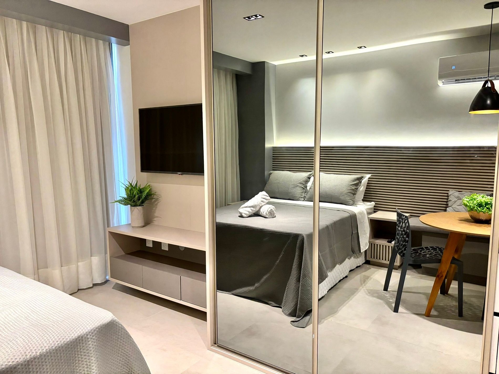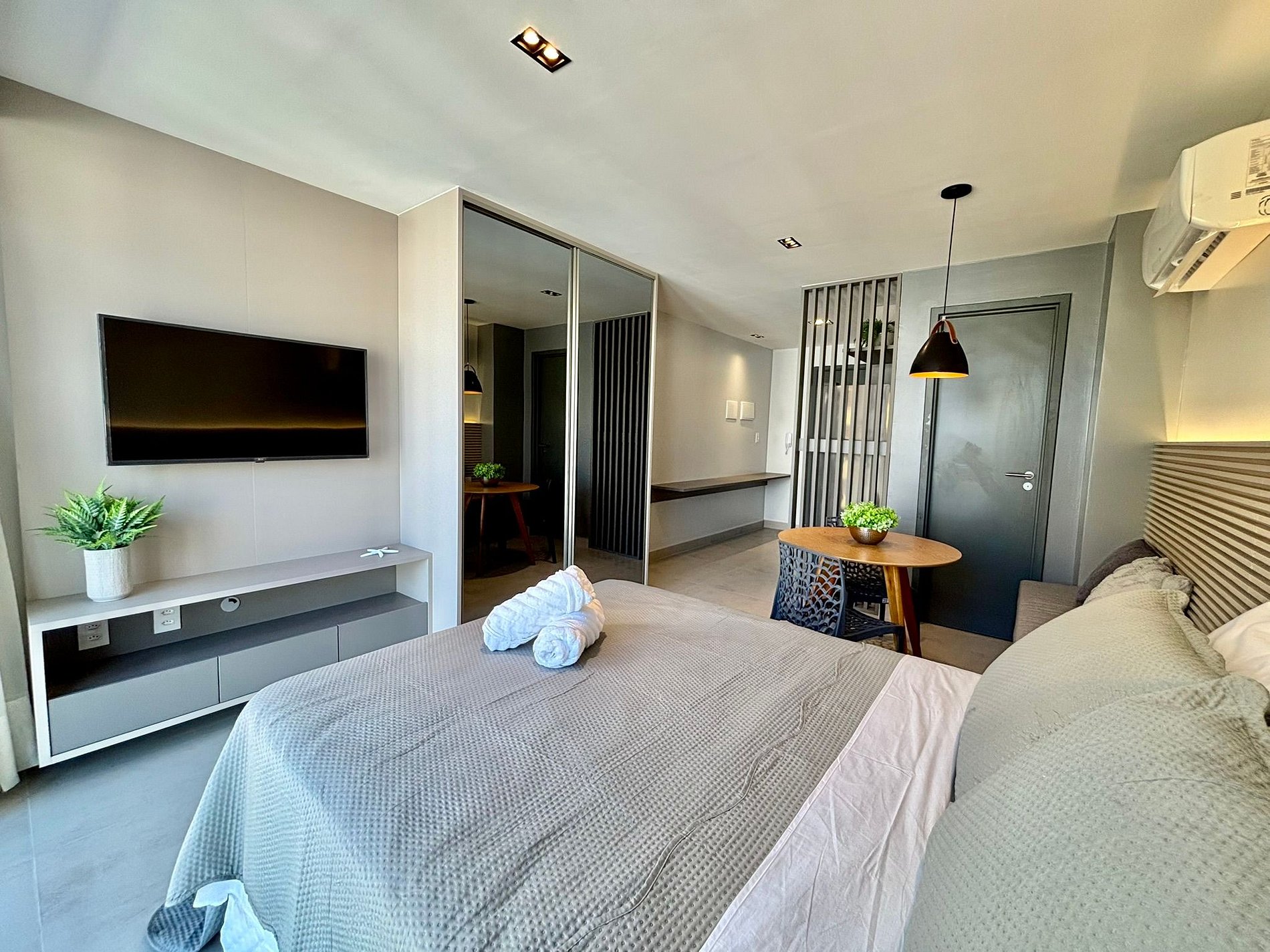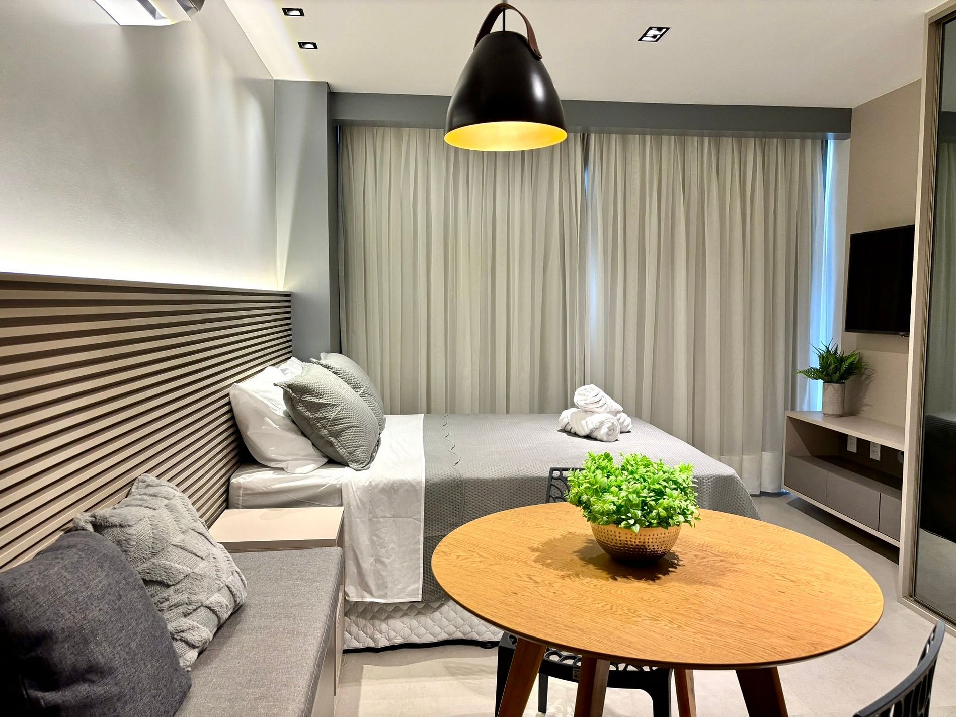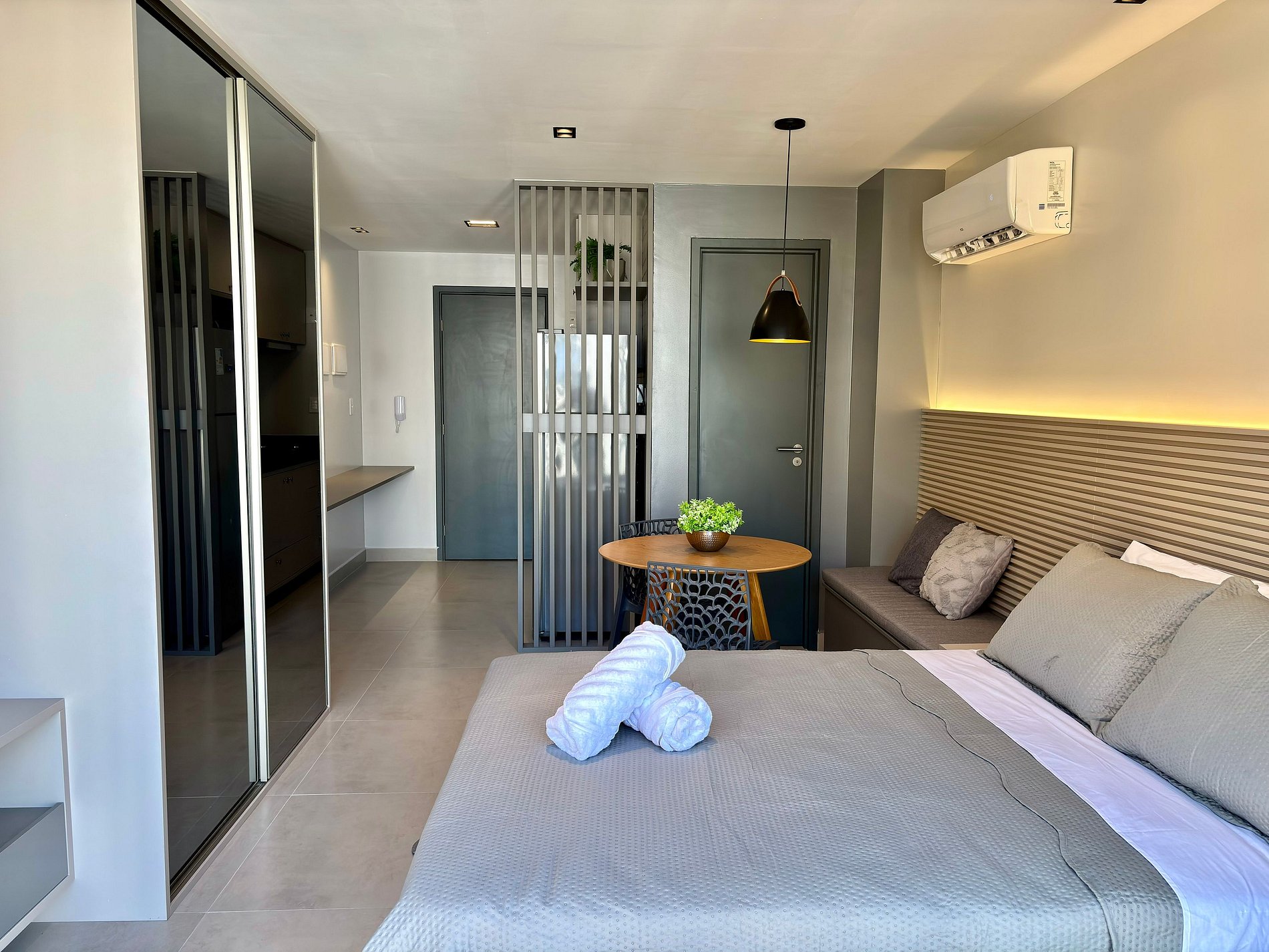 Desfrute de um flat novo e pertinho da praia. Comporta até 3 pessoas que buscam momentos de descanso e lazer.