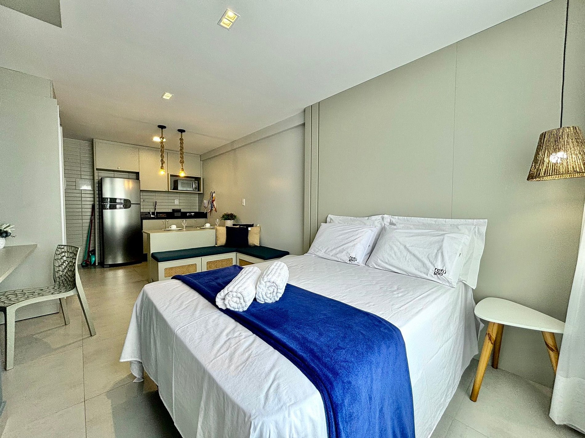 Desfrute de um flat novo e pertinho da praia. Comporta até 2 pessoas que buscam momentos de descanso e lazer.