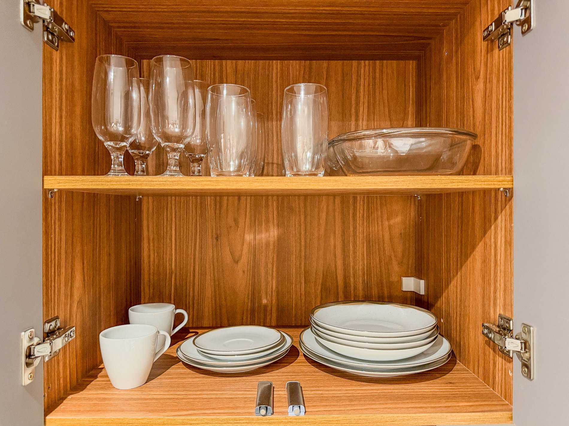 • Freezer, micro-ondas, fogão por indução, liquidificador, sanduicheira, panelas, utensílios e louças.