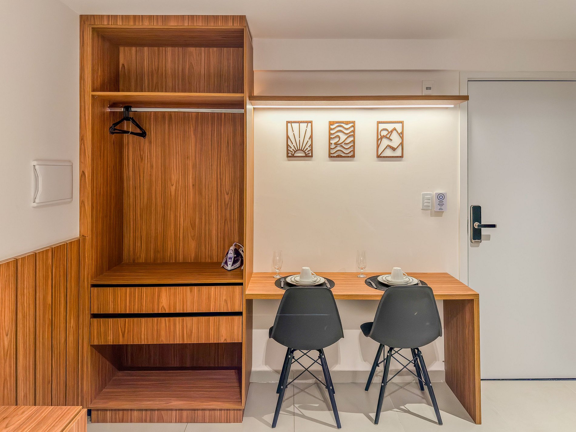 Desfrute de um estúdio novo em edifício à beira-mar. Perfeito para 2 pessoas que buscam descanso e lazer.