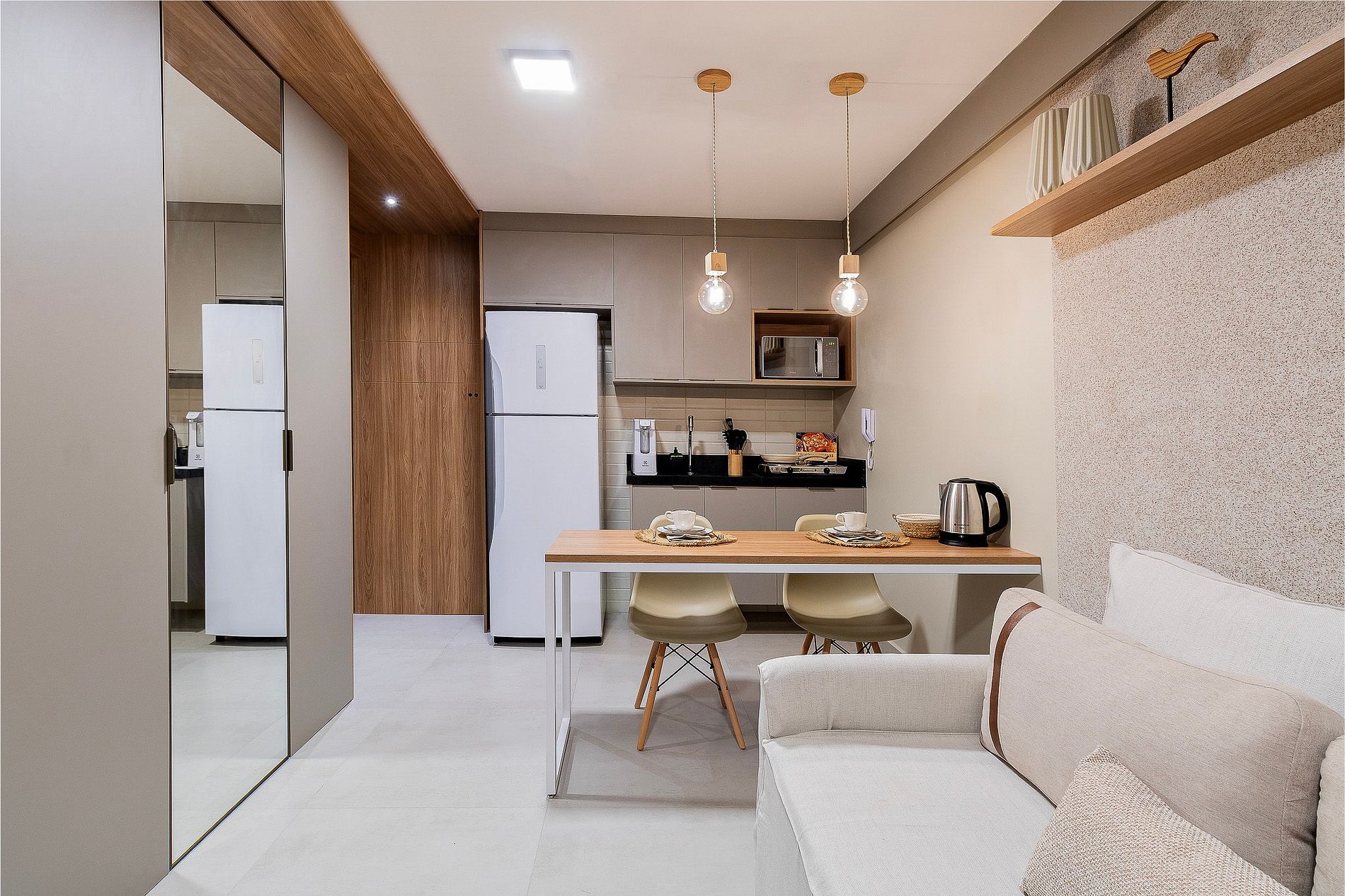 Os apartamentos foram cuidadosamente projetados para oferecer o máximo de conforto e funcionalidade. Com uma decoração moderna e mobiliário de alta qualidade, o espaço combina praticidade com sofisticação. Cada detalhe foi pensado para atender às necessidades dos hóspedes, tornando o UMI Flats a escolha ideal para quem busca um refúgio perfeito.