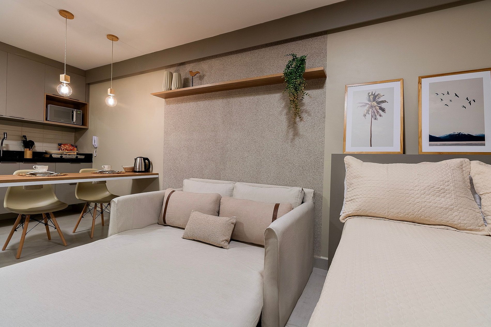 Os apartamentos foram cuidadosamente projetados para oferecer o máximo de conforto e funcionalidade. Com uma decoração moderna e mobiliário de alta qualidade, o espaço combina praticidade com sofisticação. Cada detalhe foi pensado para atender às necessidades dos hóspedes, tornando o UMI Flats a escolha ideal para quem busca um refúgio perfeito.