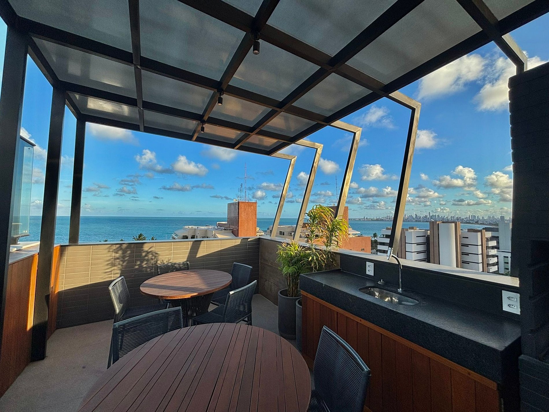 O prédio oferece uma série de comodidades projetadas para garantir conforto e bem-estar aos hóspedes. Entre os destaques, está a piscina na cobertura, com uma vista panorâmica espetacular do oceano, além de lounges externos perfeitos para relaxar. Há também uma área gourmet com churrasqueira, ideal para momentos de confraternização. Portaria 24h, proporciona praticidade e atendimento personalizado durante a estadia. Outras facilidades incluem lavanderia no local e estacionamento rotativo, garantindo ainda mais conveniência.