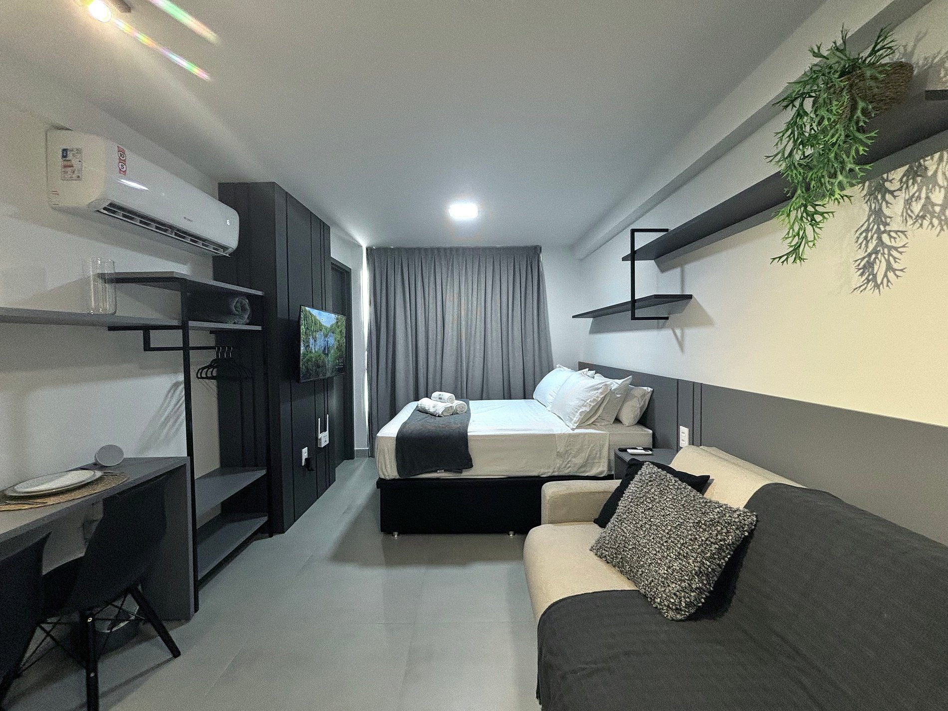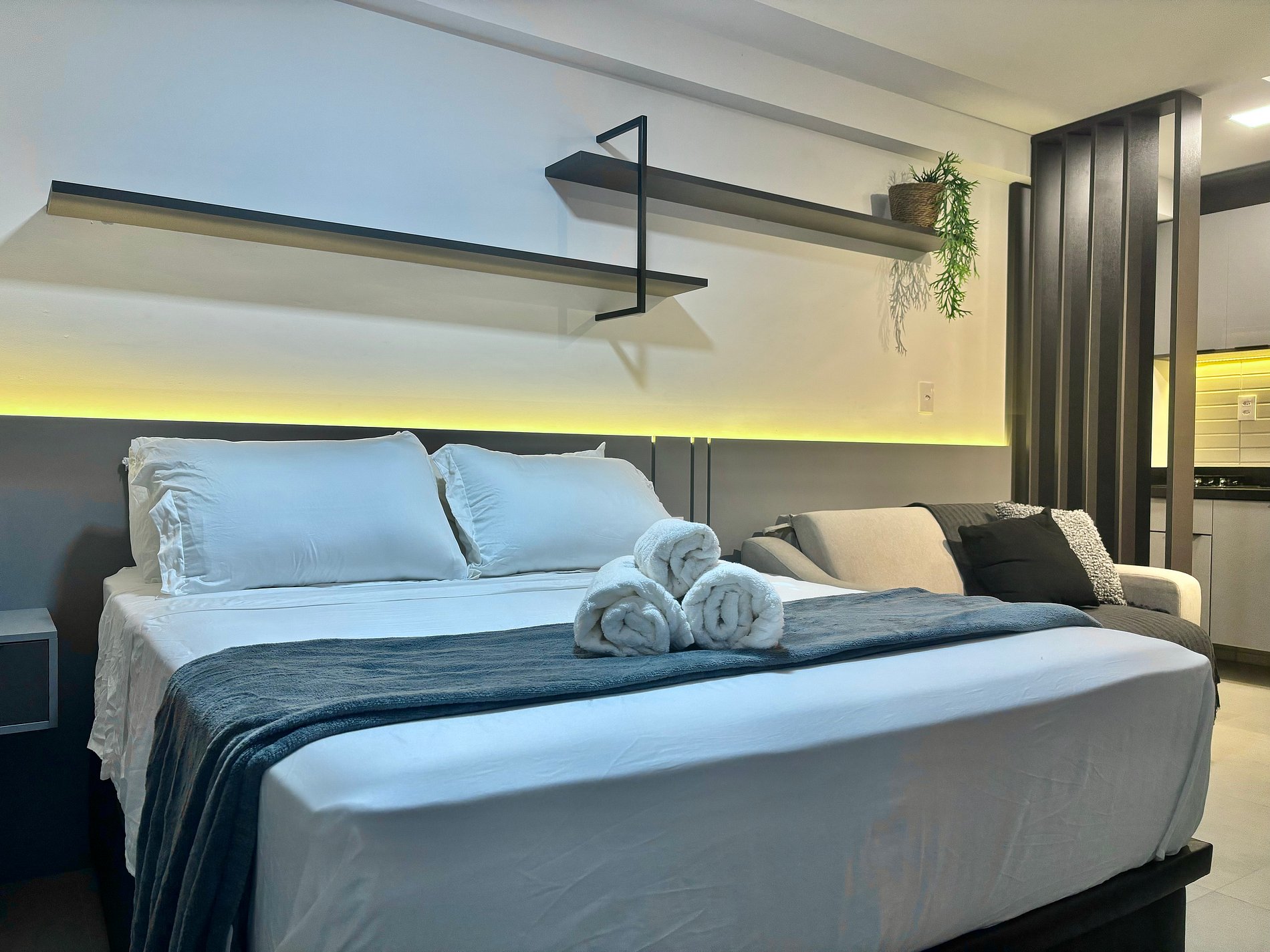 Os apartamentos foram cuidadosamente projetados para oferecer o máximo de conforto e funcionalidade. Com uma decoração moderna e mobiliário de alta qualidade, o espaço combina praticidade com sofisticação. Cada detalhe foi pensado para atender às necessidades dos hóspedes, tornando o UMI Flats a escolha ideal para quem busca um refúgio perfeito.