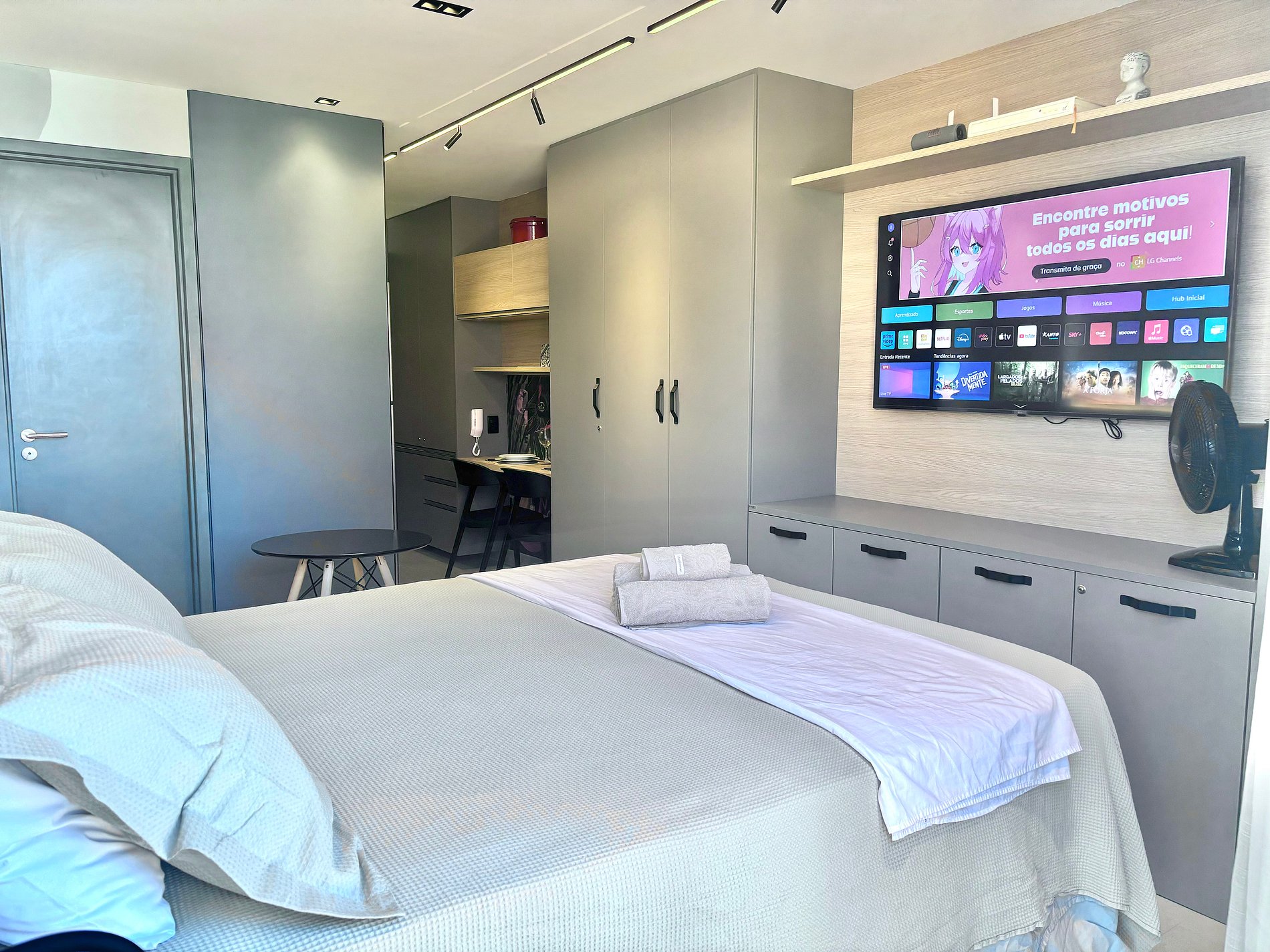 • Nº de Hóspedes: O flat acomoda confortavelmente duas (2) hóspedes. Oferecemos roupa de cama e banho.