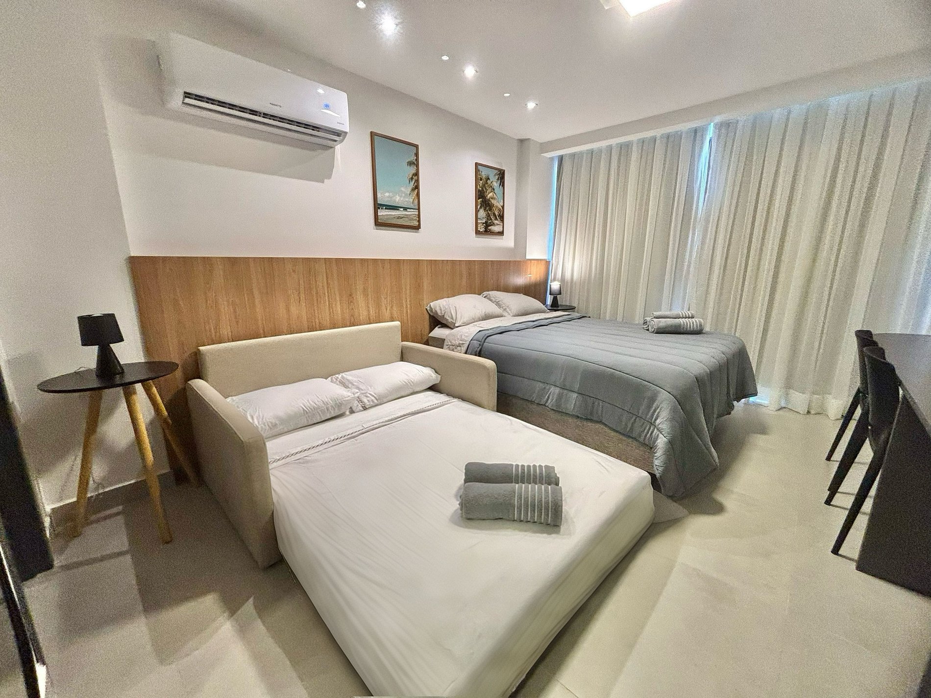Apartamento aconchegante de 28,61m² no 8º andar de um charmoso prédio, entregue em 2024, a apenas 120m da praia de Intermares. O espaço acomoda 4 pessoas, com cama queen, sofá-cama casal, smart TV, Wi-Fi e cozinha equipada. O condomínio oferece uma piscina na cobertura com vista incrível do mar, espaço gourmet, lounge, área de churrasco, elevador e lavanderia. Restaurantes, farmácias, mercados e shoppings estão em um raio de 700m. Perfeito para quem busca conforto e uma localização privilegiada.