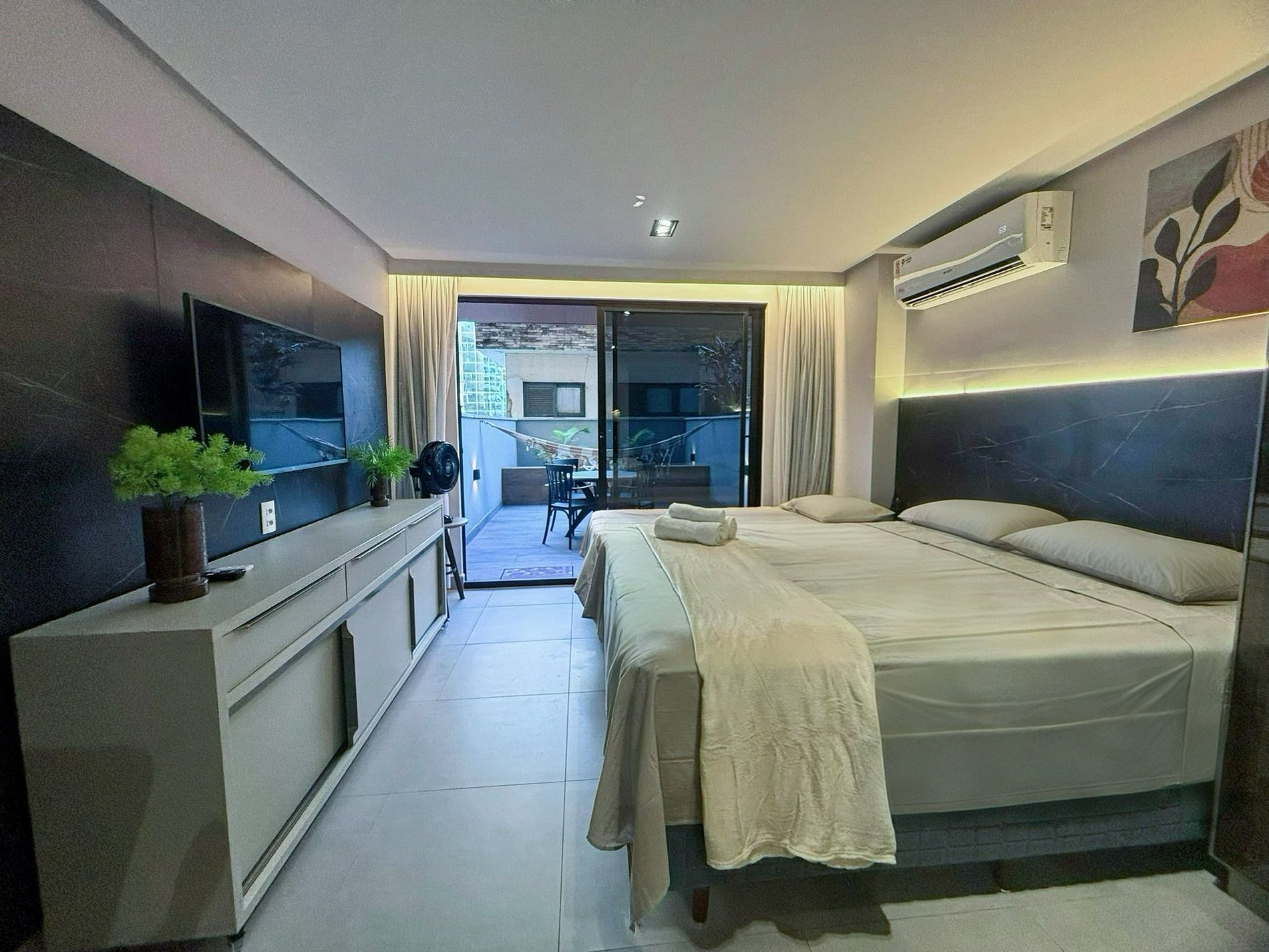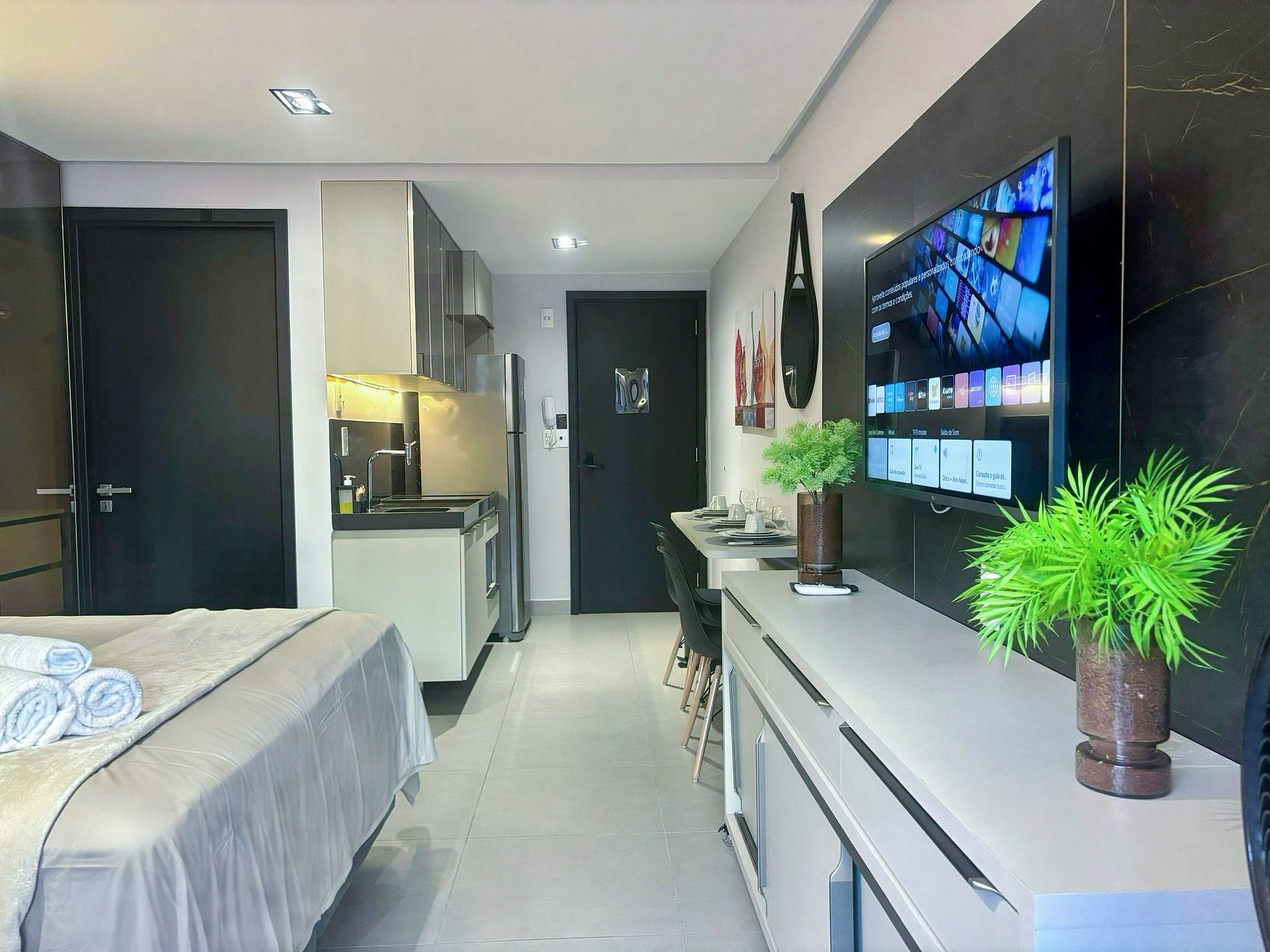 O apartamento foi projetado para receber hóspedes com total conforto e praticidade, com estrutura moderna, fechadura eletrônica para um check-in seguro e mobília de qualidade. Cada detalhe foi pensado para garantir uma estadia funcional e agradável, ideal para quem busca o melhor de João Pessoa.