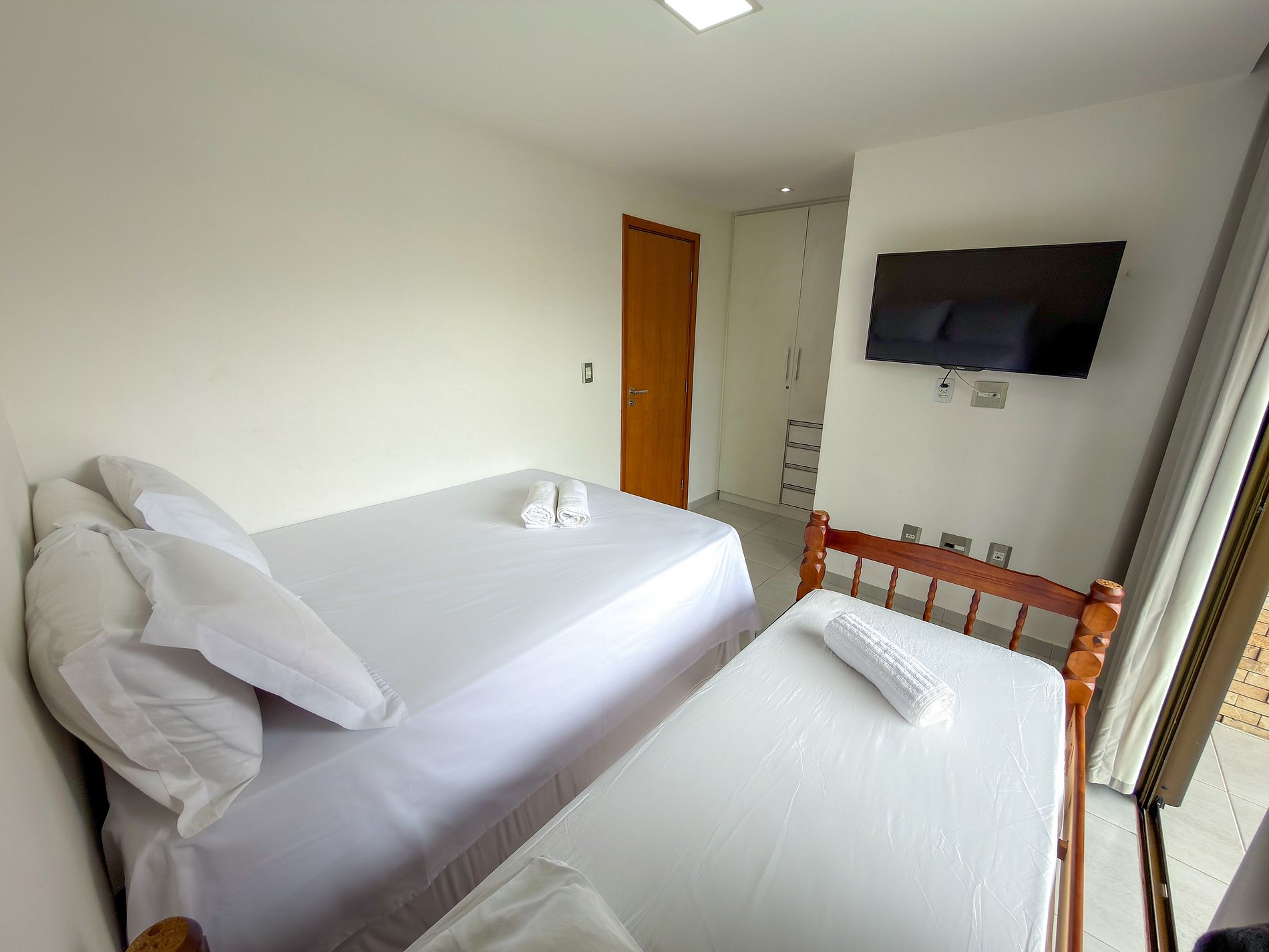 • Suíte 3: cama casal + cama de solteiro, com TV e ar-condicionado.