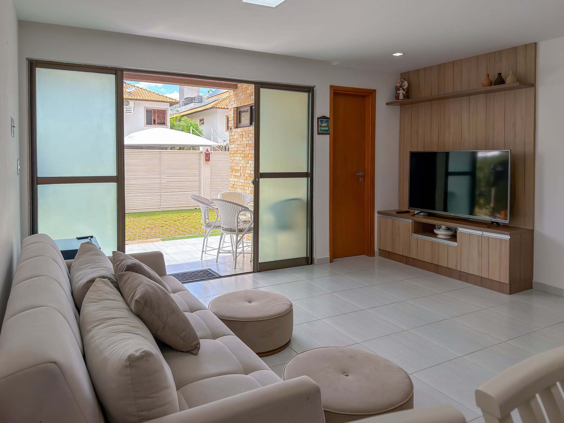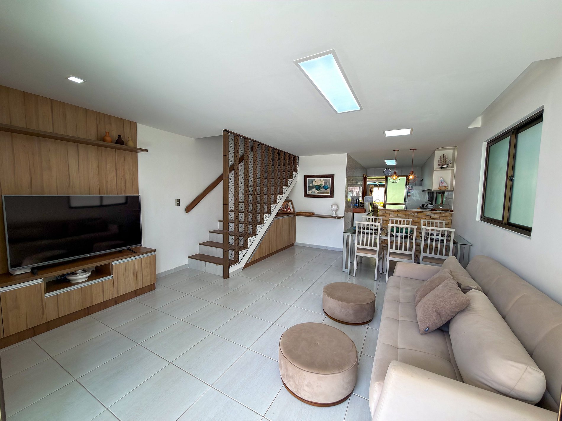 • Suíte 2: cama casal confortável + colchão de solteiro, com TV e ar-condicionado.