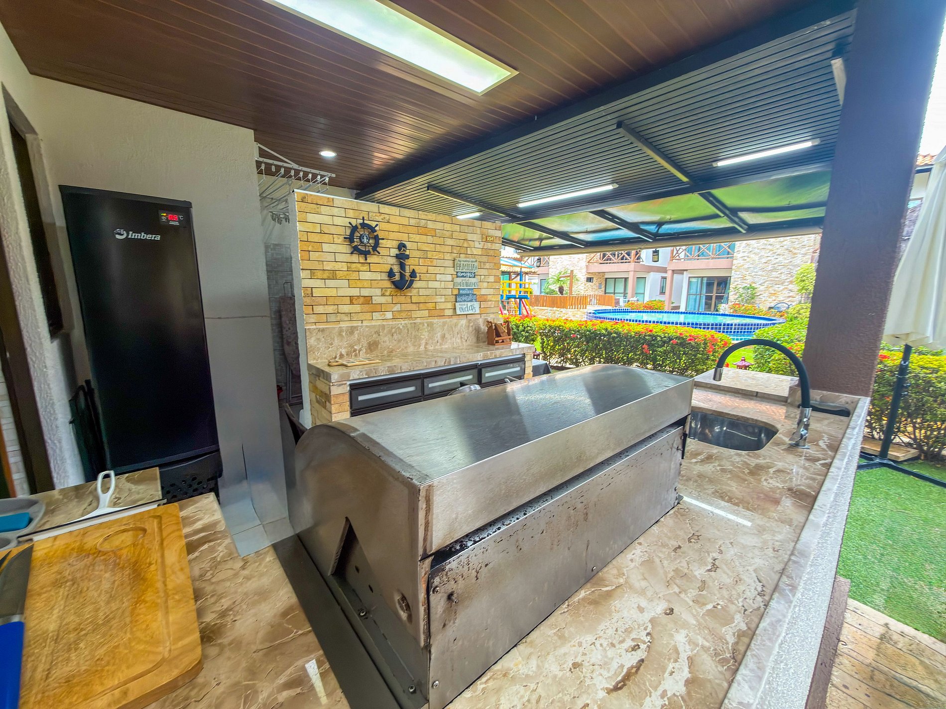 • Áreas espaçosa com mesa e armadores de rede.