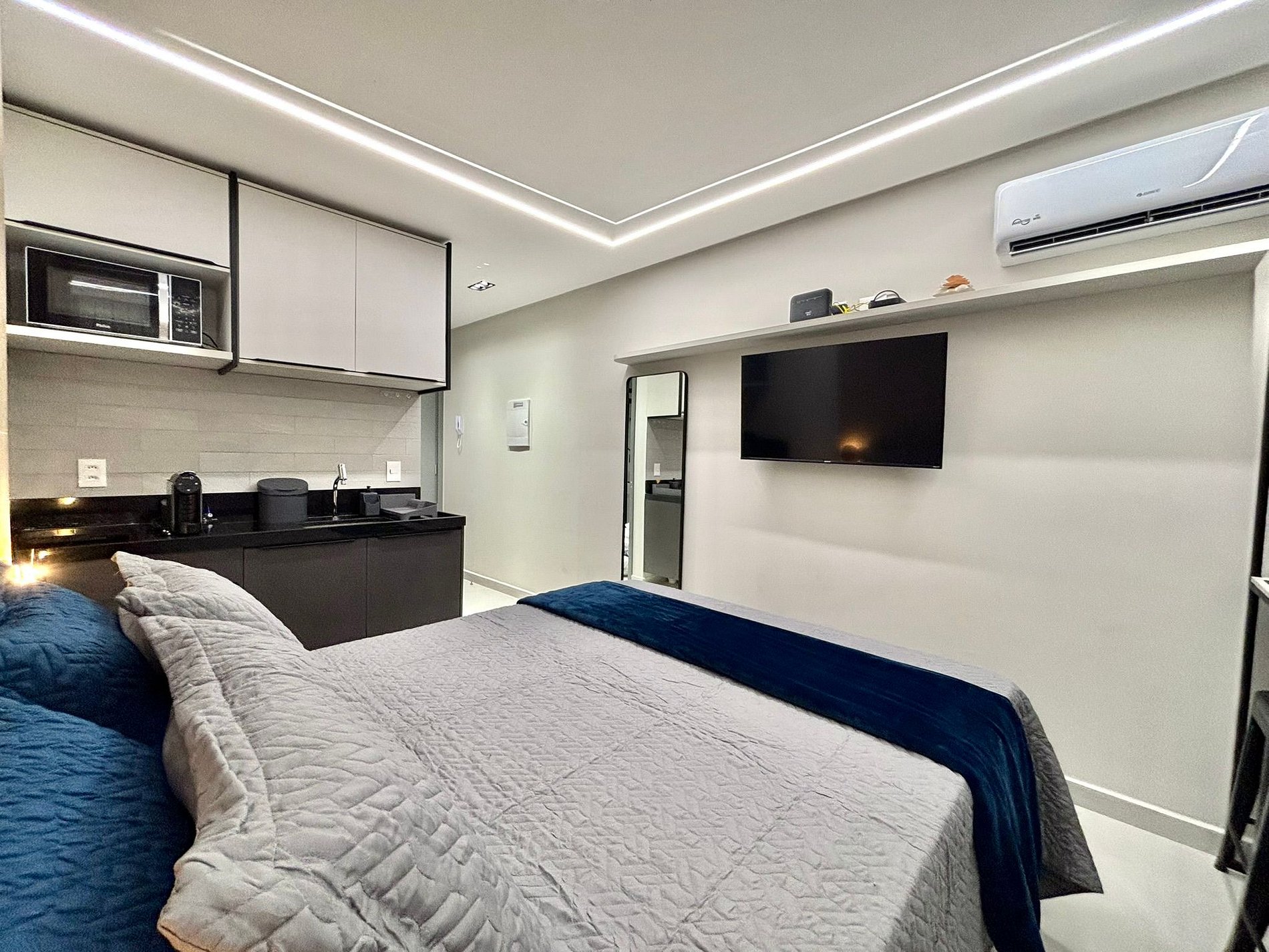 Desfrute de um estudio novo em um prédio beira-mar. Ideal para 2 pessoas que buscam momentos de descanso e lazer.
