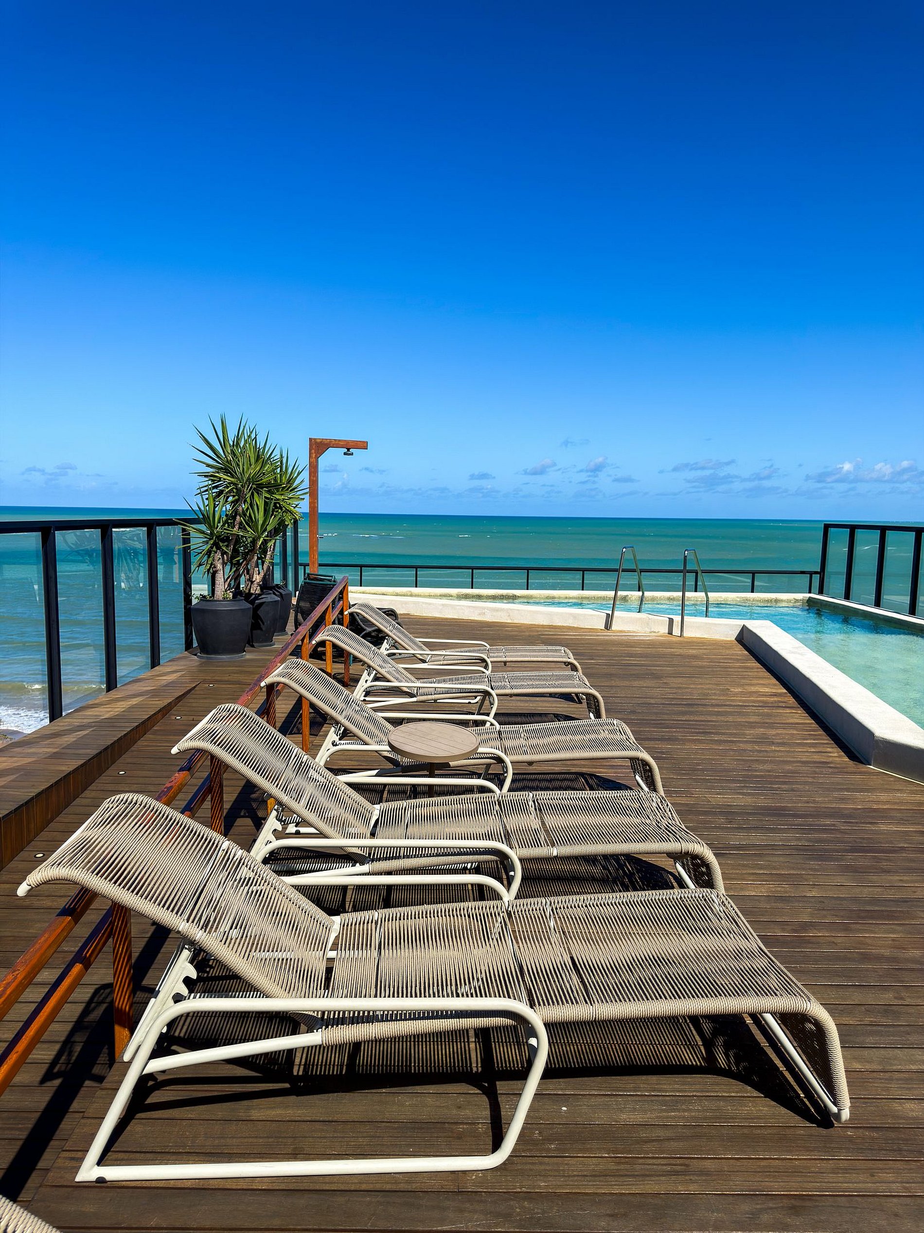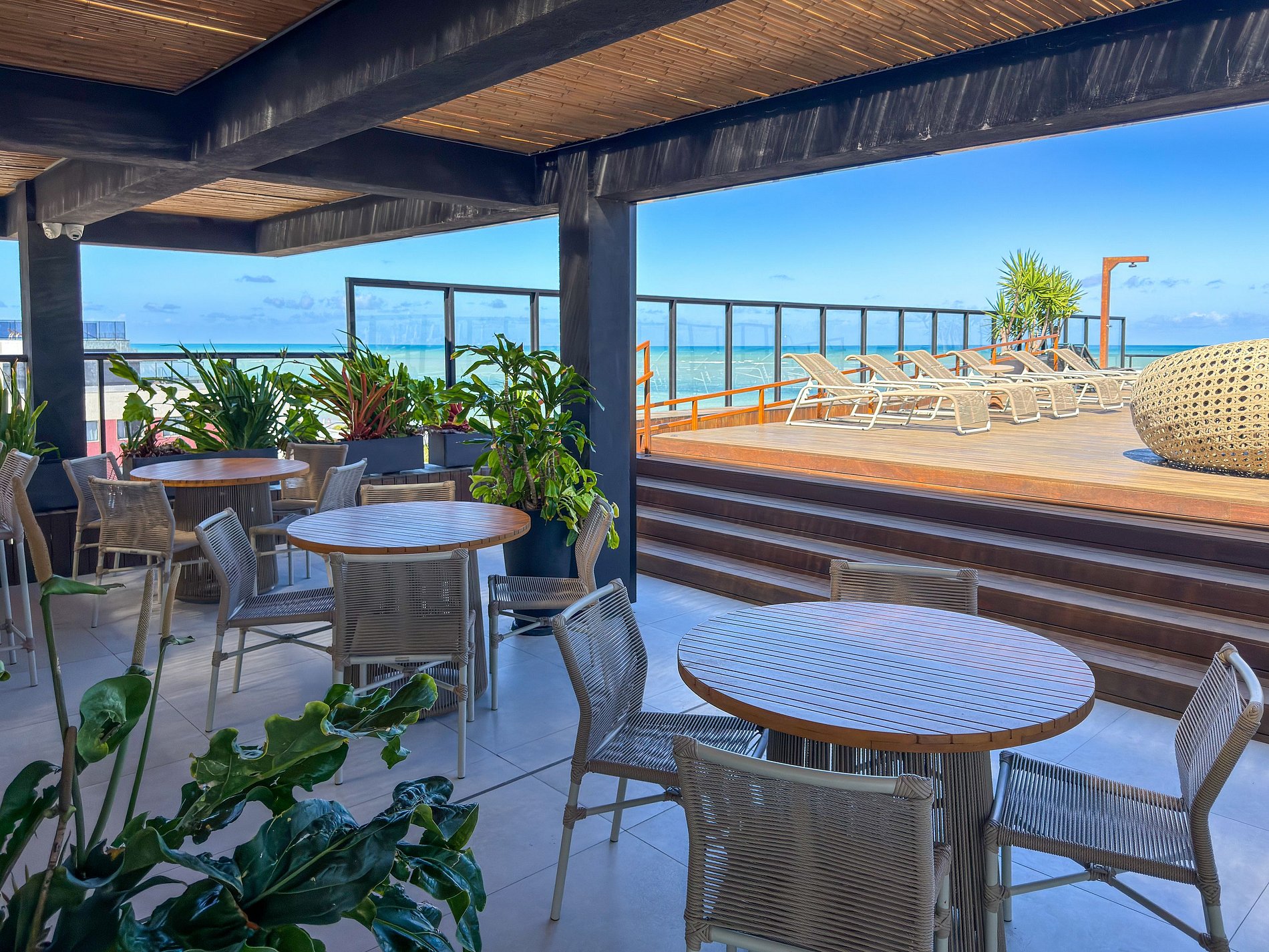 Estudio confortável em um moderno prédio à beira-mar da praia do Bessa. O espaço acomoda 2 pessoas, com cama queen, smart TV, Wi-Fi, cozinha equipada e terraço. O edifício conta com uma piscina com vista incrível no rooftop, além de espaço gourmet, lounge, academia, bicicletario e guarderia com pranchas, caiaques e stand-up paddle à disposição. Restaurantes, farmácias, mercados e shoppings próximos. Perfeito para quem busca conforto e uma localização privilegiada.