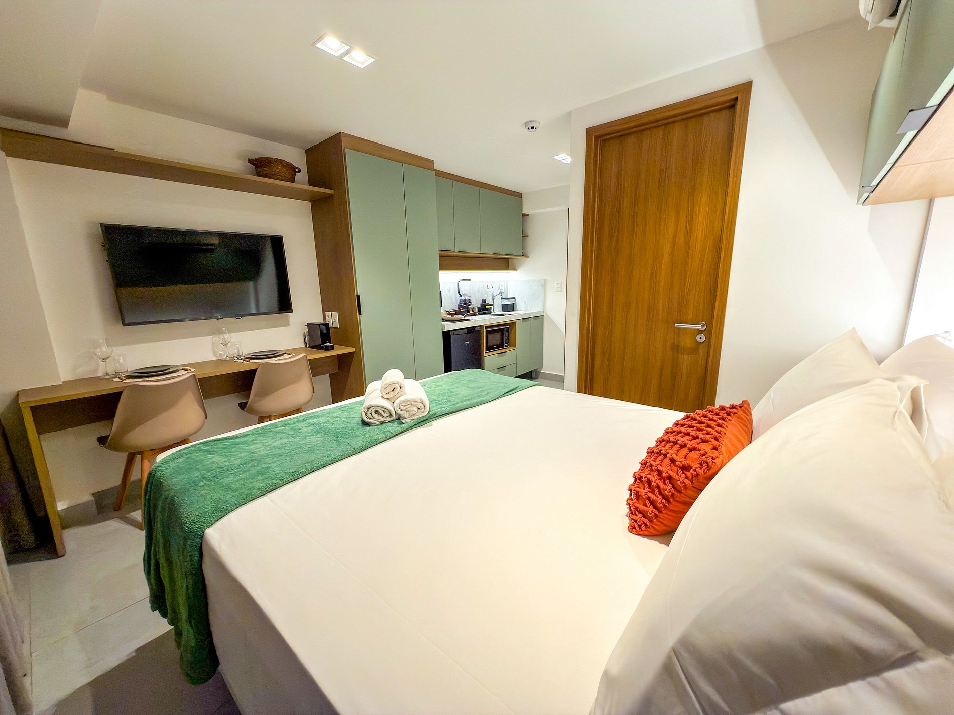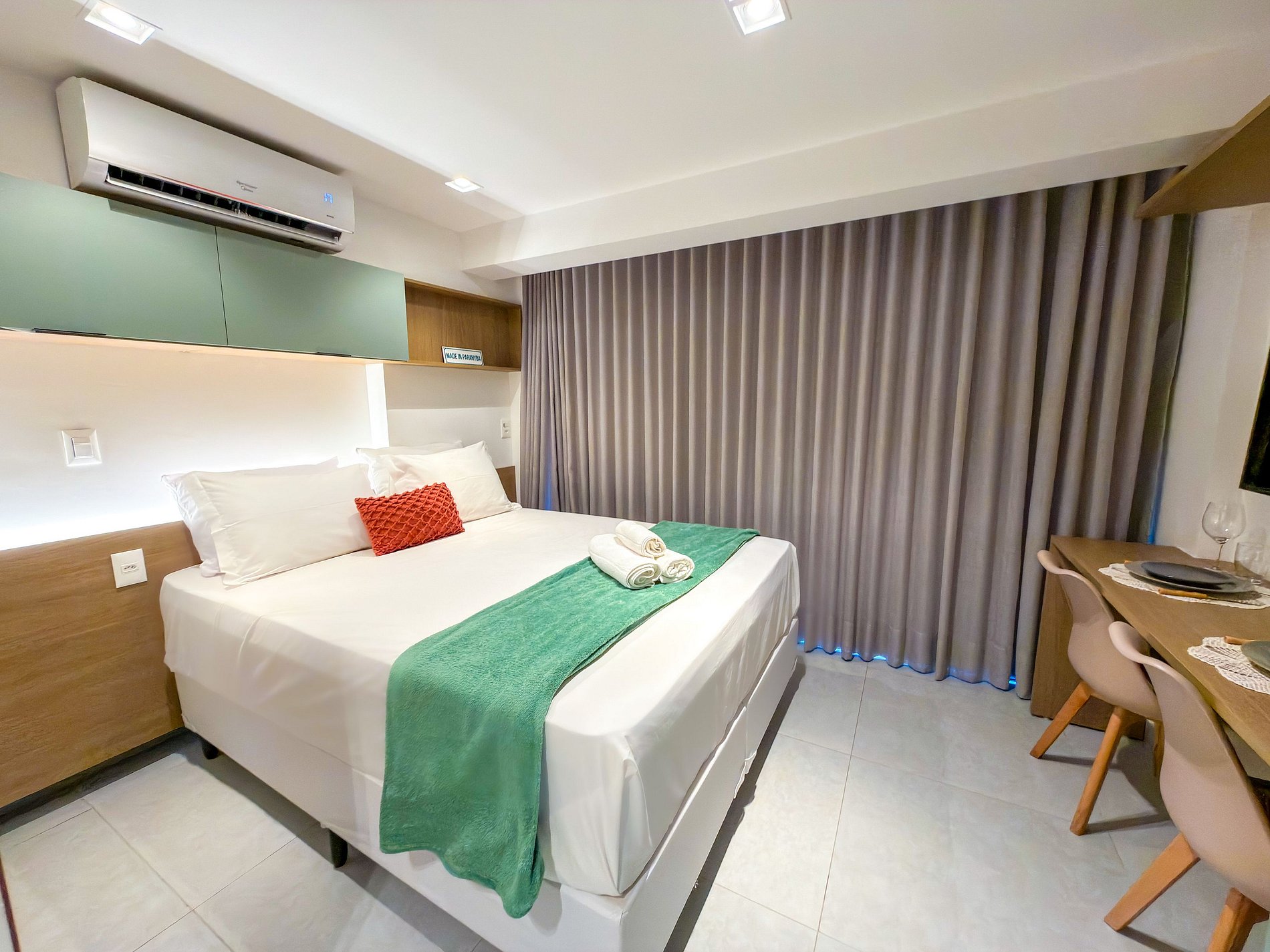 Desfrute de um estudio novo em um prédio beira-mar. Ideal para 2 pessoas que buscam momentos de descanso e lazer.