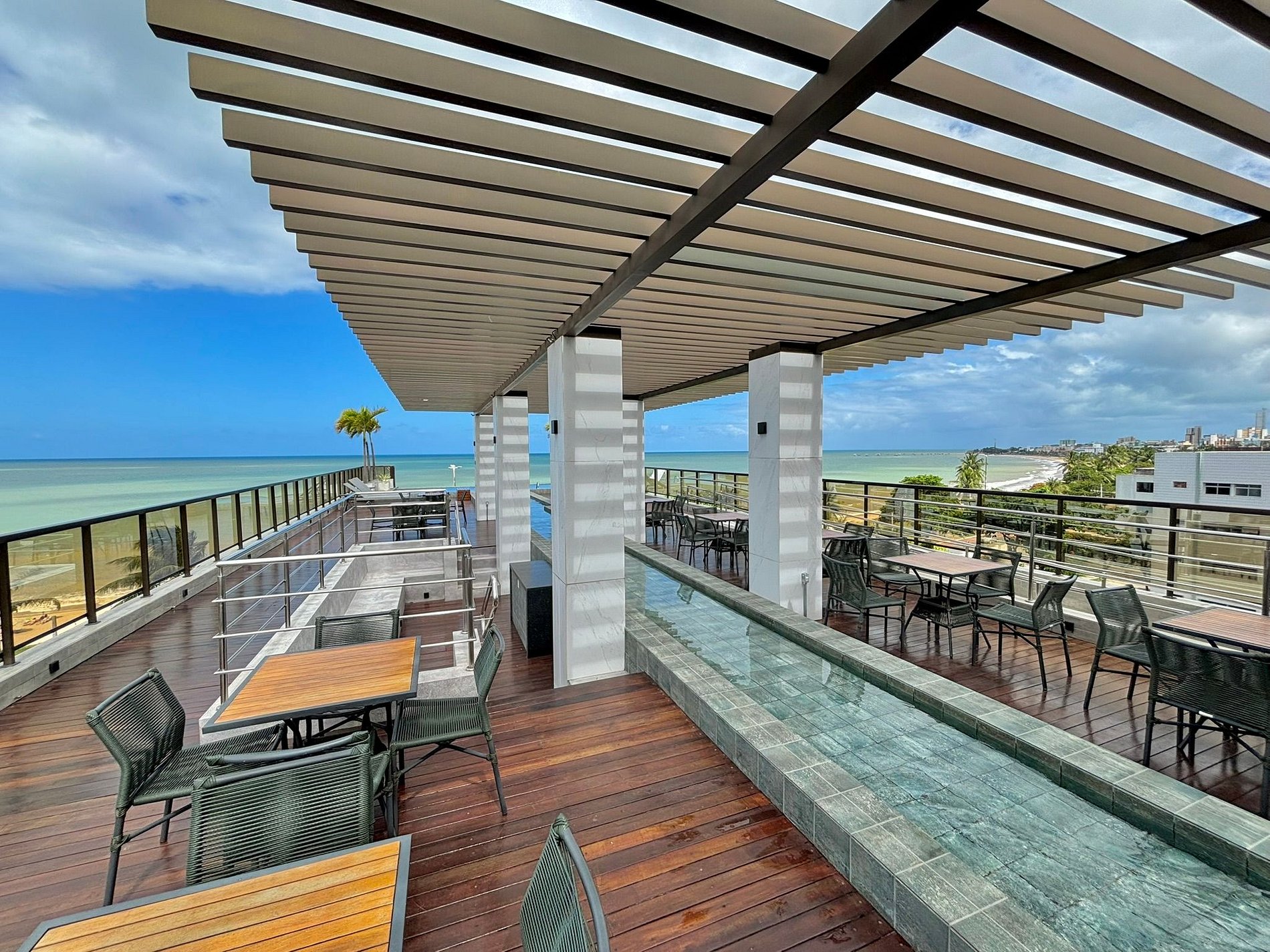 O Arpoar Suítes – Manaíra está localizado na orla de Manaíra, uma das regiões mais valorizadas e convenientes de João Pessoa. O edifício oferece estrutura completa de hotel, com recepção 24 horas, serviço de quarto e limpeza, academia, restaurante, balcão de turismo e uma piscina na cobertura com vista incrível para o mar. No térreo, há lojas, cafeterias e lanchonetes, proporcionando praticidade e opções de conveniência sem precisar sair do prédio.